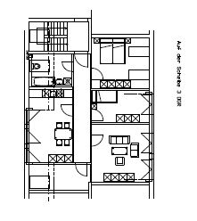 Die Wohnung (DG) verfügt über ein Bad mit Wanne (gefliest, Fenster), eine Küche, ein Wohnzimmer , ein Schlafzimmer und zwei Kinderzimmer. Wände und Decken sind tapeziert. In Küche und Flur wird CV-Belag verlegt. Gegen einen Aufpreis vom 32,00 € monatlich wird die gesamte Wohnung mit Belag ausgelegt.