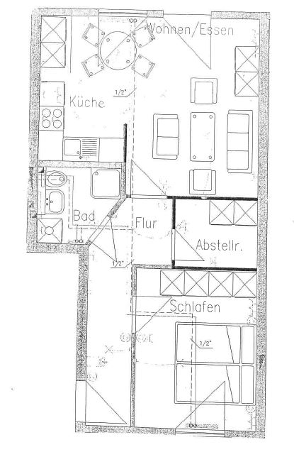 Die Wohnung verfügt über ein Wohn-/Esszimmer mit integrierter aber teilweise abgeteilter Küche,Terrasse,ein Schlafzimmer,